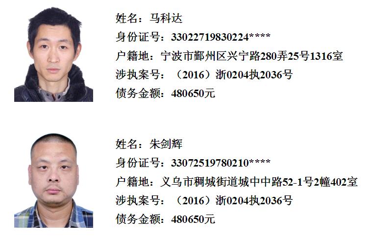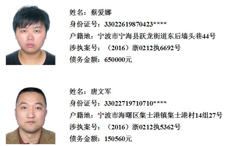 为维护法律尊严和司法权威,根据《中华人民共和国民事诉讼法》、最高人民法院《关于公布失信被执行人名单信息的若干规定》等相关规定,本院对应当履行生效法律文书确定的义务而未履行完毕的被执行人相关信息予以公布。 本院敦促被曝光的失信被执行人尽快主动履行义务。如已全部履行生效法律文书确定的义务,请及时与本院联系,本院将删除相应的信息。 本院欢迎社会各界对被执行人的下落或者可供执行的财产线索进行举报【举报电话为:0574-87412257(工作时间)、0574-87412211(非工作时间)】,并将在实际执行到位的金额中对举报人予以适当奖励,同时欢迎公众对本院执行工作提出宝贵意见。